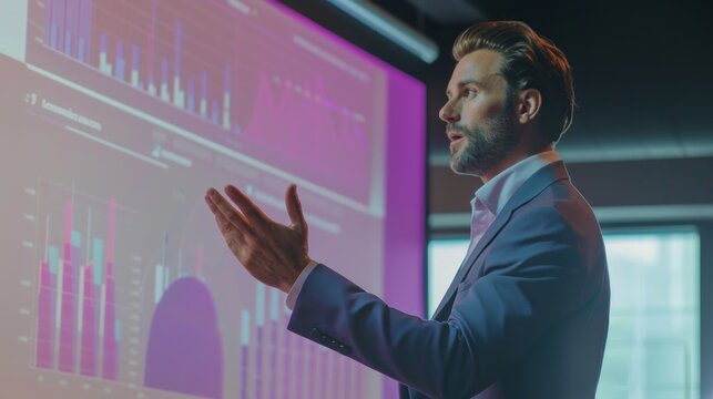 Executives Presenting Quarterly Business Analytics in Modern Boardroom