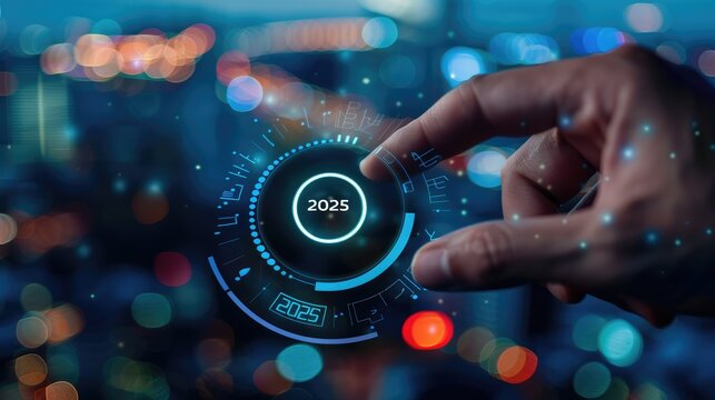 Hand pressing green button. A robotic hand is poised to press a glowing green button, symbolizing technology and automation in a sleek environment.