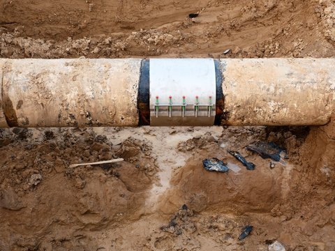 Big drink water pipes joined with  stainless repairing sleeve members