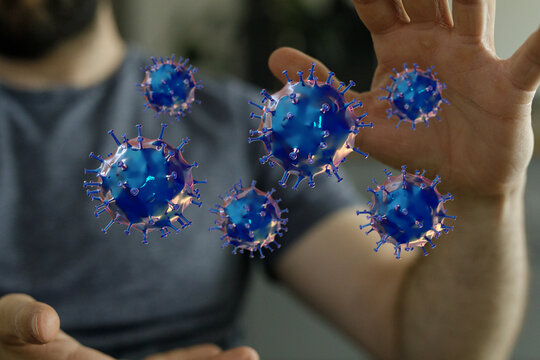 Concept of health protection from pandemic outbreak. Hand shielding against coronavirus germs. Preventing infe