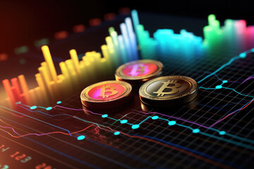 Stock price charts and stock market analysis, stock trading technology and digital assets, investors analyzing stock charts for profitable trading. Money growth. The idea of investing money to grow.
