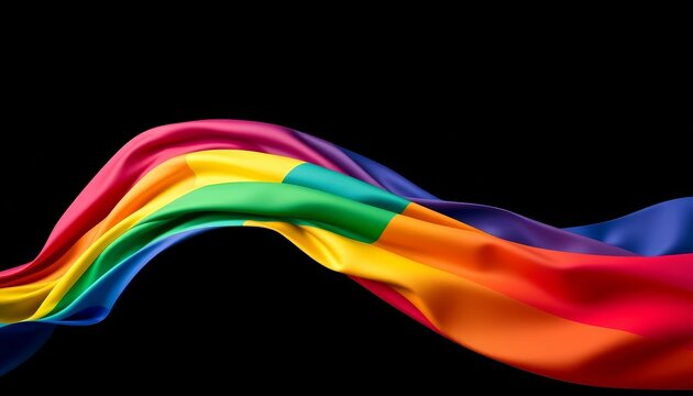 Dynamic wave of rainbow LGBTQ+ pride flag on dark background, gay, celebration
