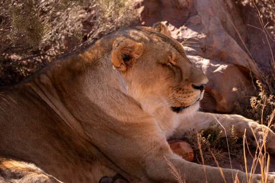 Lion roaring with rage in the wild, showcasing powerful emotions against a dark, dramatic backdrop at dusk