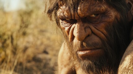 A powerful Stone Age man with massive muscles and a strikingly beautiful face, clad in fur loincloth.