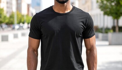 Front view of a man wearing a black blank t-shirt mockup for design apparel or print mockup