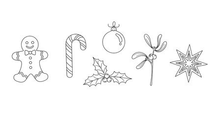 Christmas Coloring Page Set of Festive Decorations.