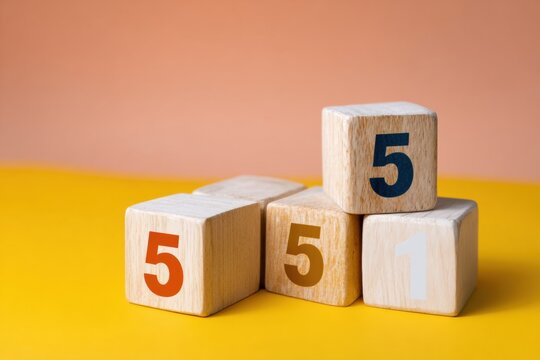 Wooden cubes numbered one and five for task priority tracking and project management solutions shown in a lifestyle business setting with copy space
