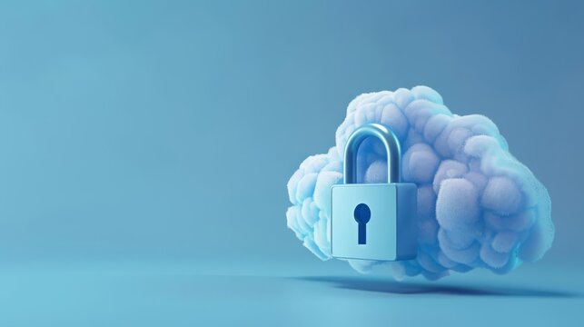 A cloud with a lock and leak, data privacy issue, 3D illustration, blue tones, isolated on white background