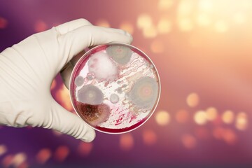 Researcher hold a culture sample in petri dish