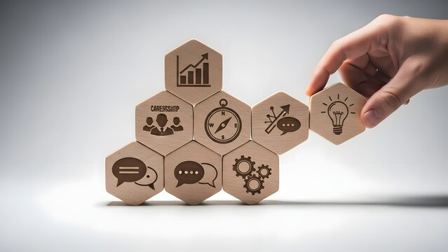 Inquiry concept with wooden cube question mark and speech bubbles symbolizing curiosity and problem solving