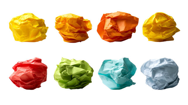 A collection of colorful crumpled paper balls symbolizing creativity, mistakes, and problemsolving offers a versatile visual asset for design projects and learning content.