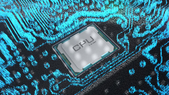 CPU. Visualization of data processing. Processor structure. 3d rendering