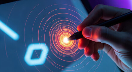 Futuristic digital interface with vibrant processing circle