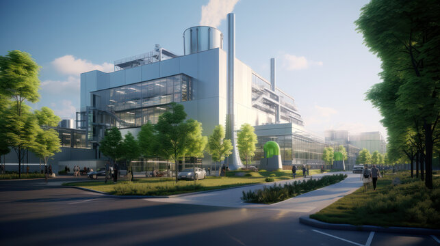 carbon storage plant, Carbon capture and storage facilities, chemical refinery,Smoking pipes of thermal power plant against blue sky