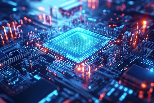 A futuristic AI core processor and system analytics dashboard. This concept highlights the raw processing power of AI for deep data analysis, system diagnostics, and global network monitoring. Fermion