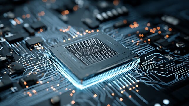 Futuristic electronic circuit board technology concept