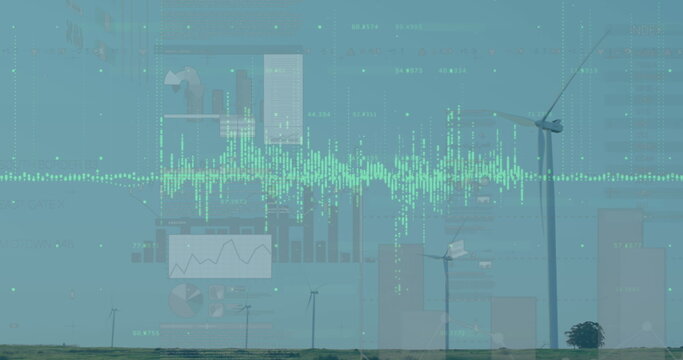 Image of financial data processing with wind turbine