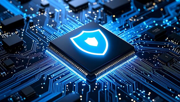Digital Touch Fingerprint Activation on a Futuristic Circuit Board with Bokeh Lights