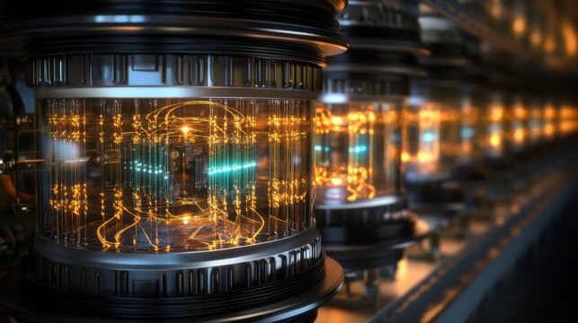 Quantum processors in action: an array of advanced quantum processors hums with vibrant energy. The image exudes an aura of cutting-edge technology and innovation