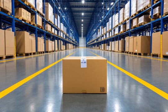 Warehouse efficiency: worker handling box with tech overlay