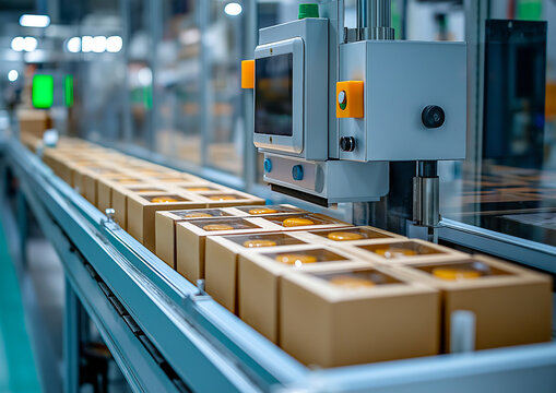 Jars with colorful preserved food moving along a conveyor belt in food production factory
