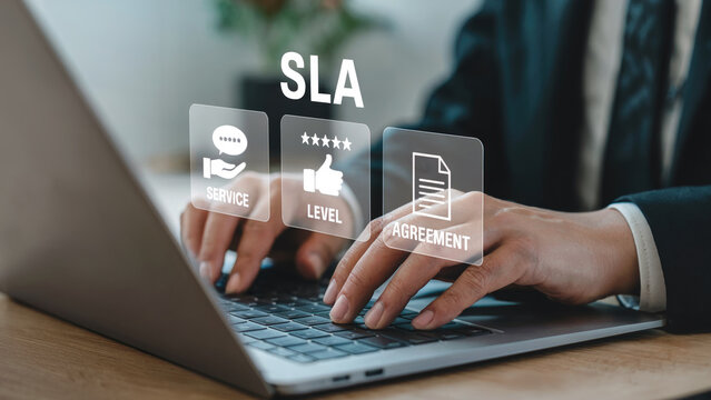 Business professional managing service level agreements and contracts on a laptop for enhanced client satisfaction