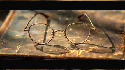 A pair of eyeglasses next to a book, symbolizing help in seeing and reading