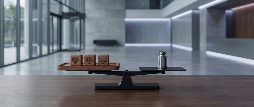 Ethical standards sign on an office desk. Integrity and professional ethics.