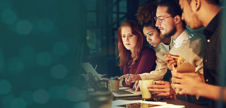 Laptop, planning and meeting with web designer, teamwork and working in development of online marketing. Website, design or group feedback for technology, strategy or creative problem solving