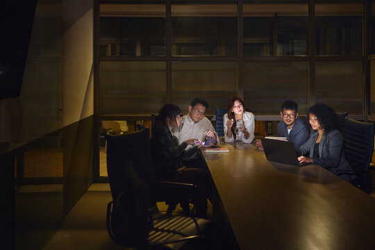 Laughter can brighten up your day. Shot of a group of businesspeople in a meeting at work.