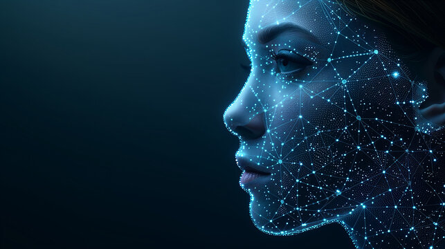 Abstract Digital Face Mesh Futuristic Portrait of Identity and Technology