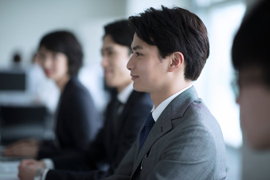 Contemplative young male listening intently profile view