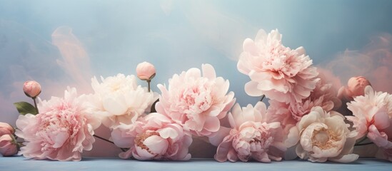 Floral artwork with pastel peonies suitable for luxury branding design and botanical flat lay with copy space image