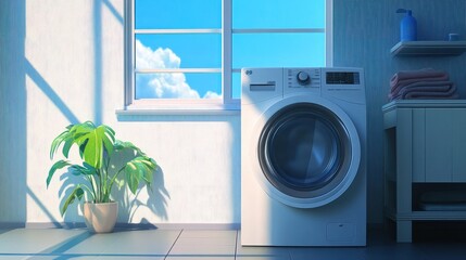 Modern washing machine with wifi connection in a laundry room.