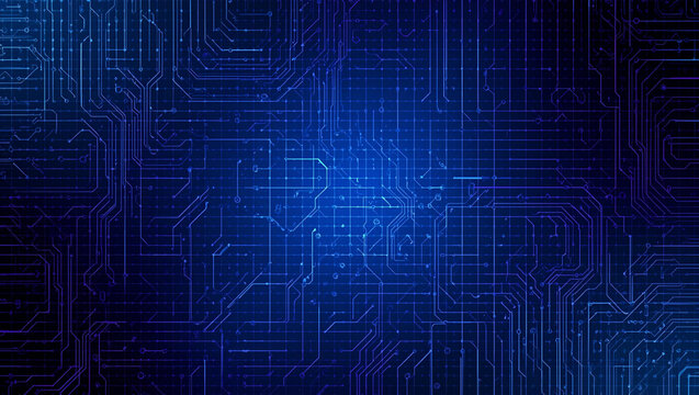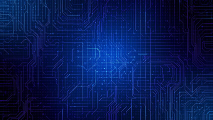 Abstract dark blue circuit board pattern with glowing lines, representing digital technology and futuristic design.