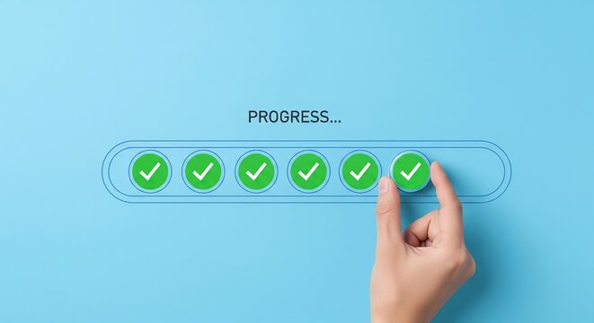 Businessman marking checklist with loading progress bar. Concept of task tracking, project development, management workflow, and monitoring ongoing business progress.