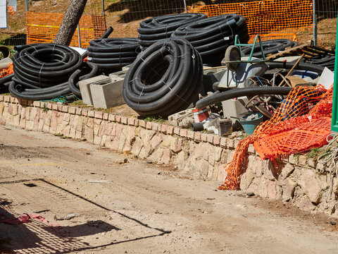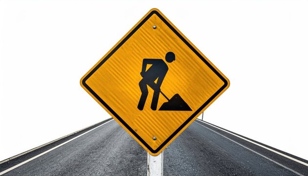 Roadwork Ahead: A striking yellow sign, alerting of roadwork, stands prominently against the backdrop of an open road, signifying progress and ongoing development.