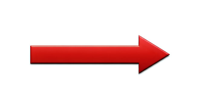 Bold red arrow points right with subtle shadow suggesting forward movement and direction, perfect for presentations and indicators.