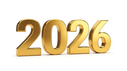 Gold 3D numbers 2026 on a white background with a metallic sheen and subtle shadow underneath.