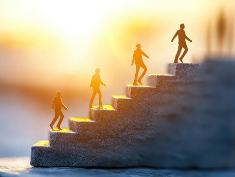 visual showing a team setting and working towards common goals, with milestones and progress indicators.