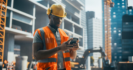 Engineers collaborating on construction project outdoors