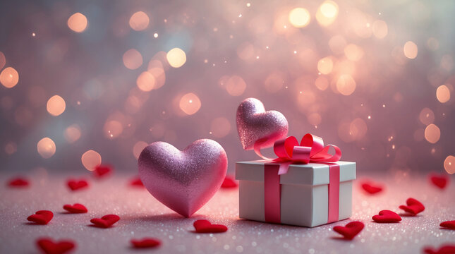 Captivating Present Box with Glittery Heart Ornament Resting on a Shiny Pink Theme wallpaper aesthetic love inspiration