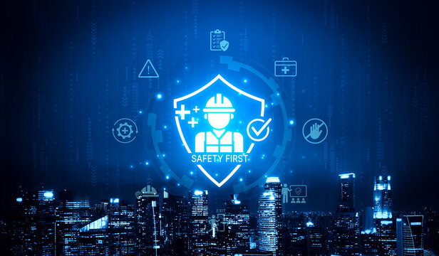 Concept of occupational health and safety. A 'Safety First' policy ensures worker protection through training, risk prevention, and adherence to workplace safety standards. Fermion