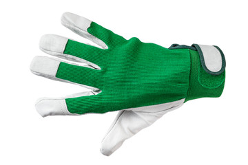 Hands in light green gloves, putting things in order, cleaning, cleaning product.
