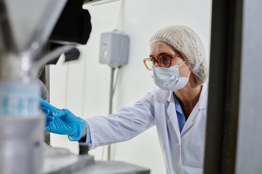 Professional chemical workers in protective suits and gas masks handle hazardous materials inside a chemical manufacturing plant.