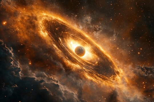 Golden protoplanetary disk in space.