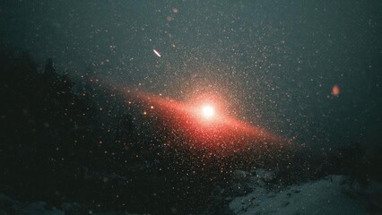 A bright red star with a glowing dusty disk in a star-filled dark space. Concept Bright red star, Glowing dusty disk, Star-filled space, Cosmic glow, Interstellar dust