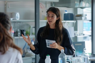 Engineer discussing robotic design in modern office environment