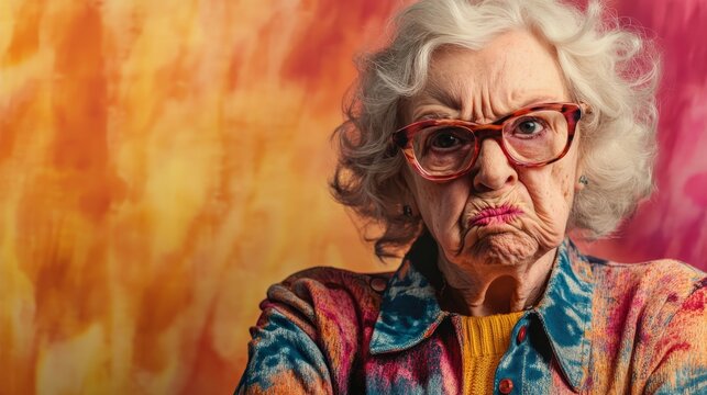 Angry aggressive rude grandma composition background