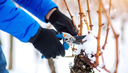 Landscaper trimming tree branches with pruning shears. Featuring precision and care